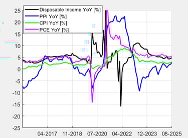 Understanding how these measures evolve is crucial when analyzing personal income. For households to maintain purchasing power, income growth must at least keep pace with inflation — ideally with PCE and CPI. When personal income grows faster than these indices, real income rises, giving consumers more discretionary spending power. Conversely, when inflation outpaces income, consumption slows, savings erode, and the overall economic mood tends to darken.